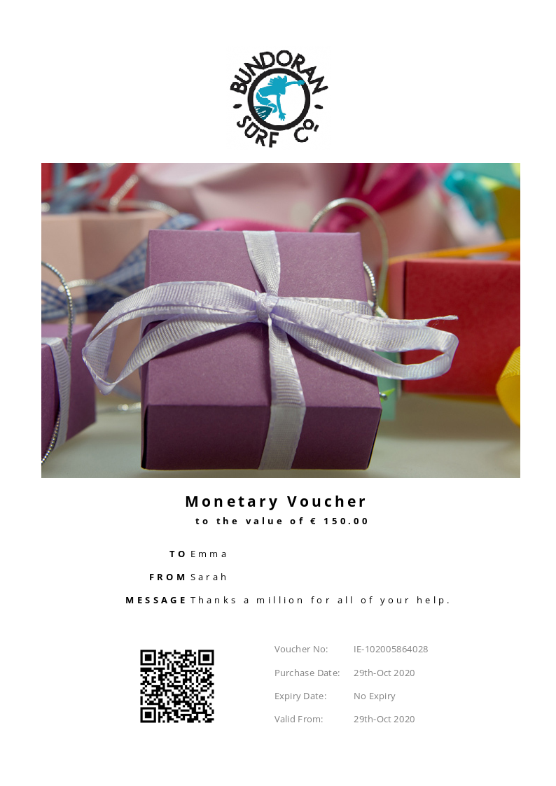 Bundoran Surf Co. allows you to purchase instantly printable gift vouchers, special offers and tickets using the Voucher Connect platform.
